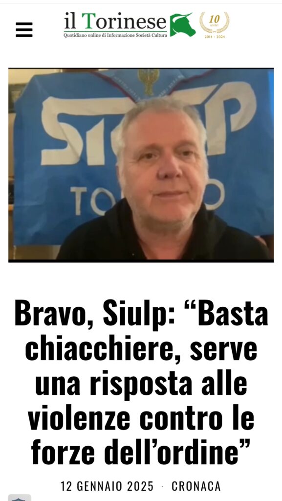 L’intervento del Segretario Generale Provinciale del Siulp di Torino Eugenio Bravo sul tema degli episodi di violenza contro le forze dell’ordine che si sono verificati anche nei giorni scorsi a Torino